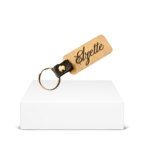 A stylish personalised wooden keyring with engraved name detail and a premium leather strap. The perfect small gift with a personal touch.